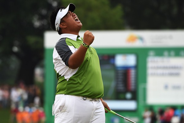 Kiradech celebrates after holing the winning putt. Picture by Getty Images.